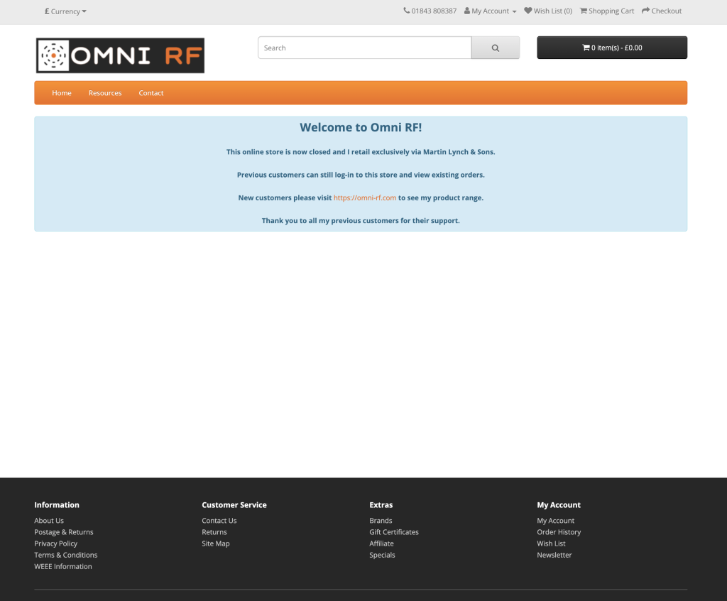 Omni RF no longer retails direct to consumers. We released a new product range in June 2025 and appointed Martin Lynch & Sons as our exclusive retailer.